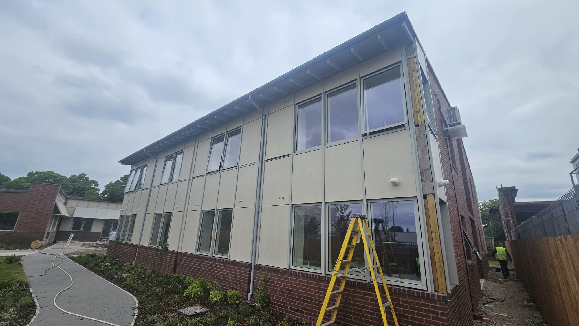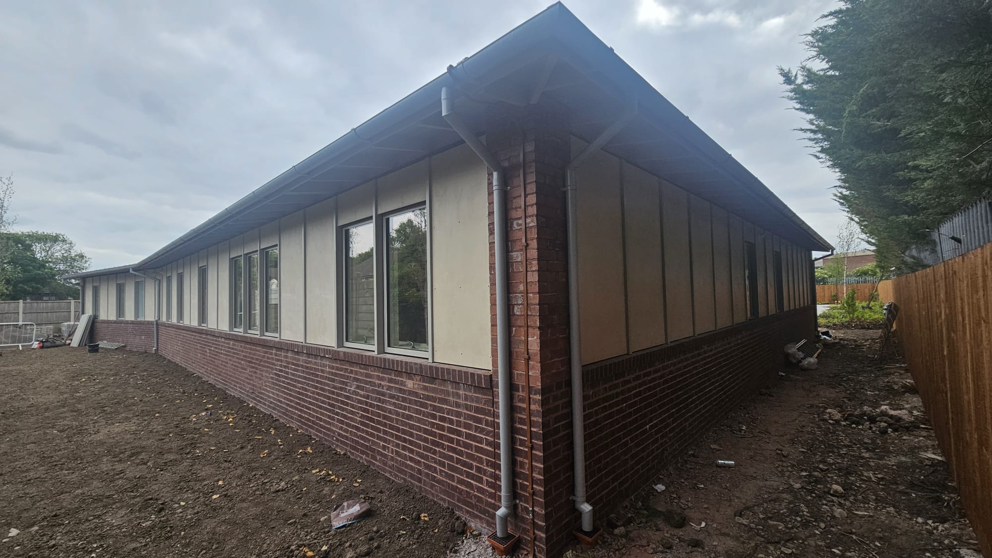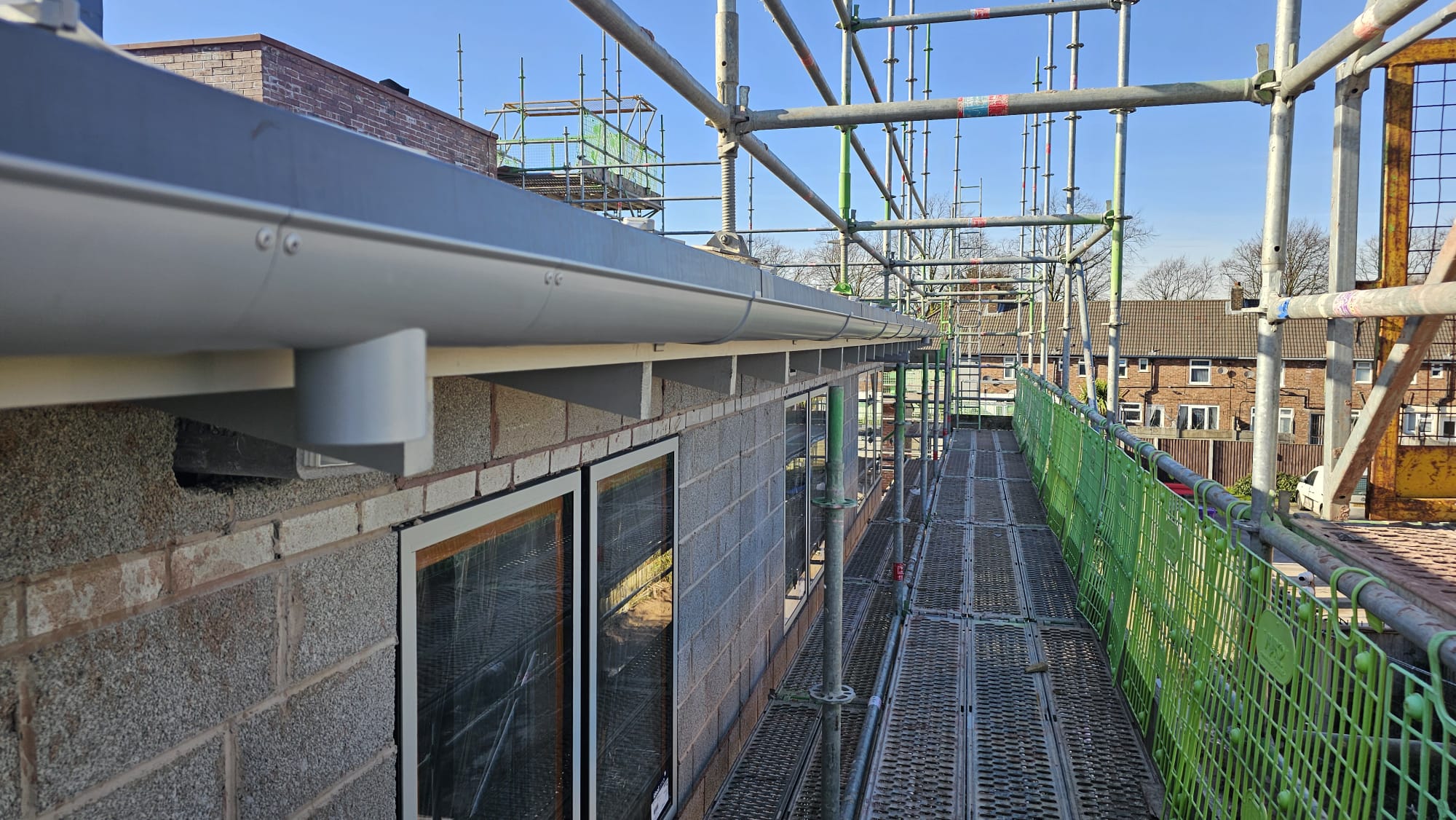 Half Round Aluminium Guttering and Downpipes installed at a commercial property in Liverpool.
